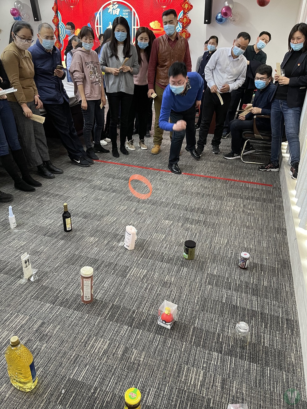 本次活動共設(shè)套圈、踢毽子、飛鏢、擲骰子等四項娛樂競技游戲,全體職工踴躍參加,在活動過程中,大家全神貫注,身手矯捷,活動現(xiàn)場氛圍歡樂,不時傳出歡聲笑語,洋溢著歡樂、和諧、喜慶的濃厚節(jié)日氛圍。為認(rèn)真落實有關(guān)疫情防控通知精神,本次活動從參與人數(shù)、場地消毒、單項活動區(qū)域劃分等都進(jìn)行了周密安排,要求所有參與活動人員全程佩戴口罩。